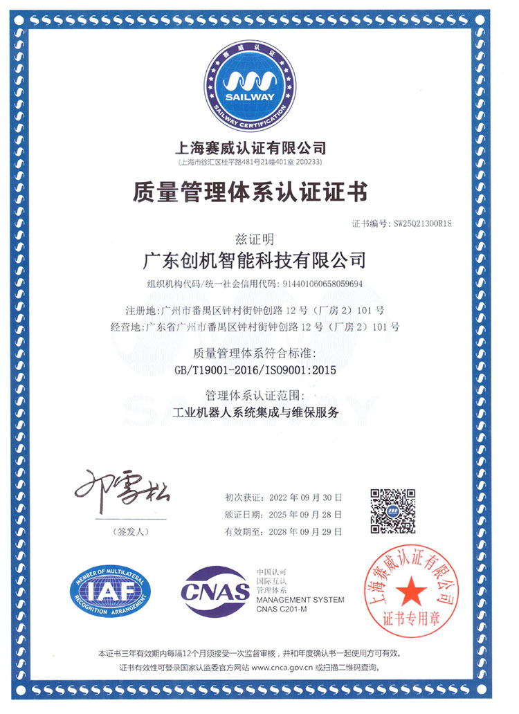 广东创机智能科技有限公司是一家专业从事工业机器人在机床加工领域应用研发系统集成的国家高新技术企业、广东省专精特新中小企业。公司提供机床自动化、信息化整套交钥匙工程,在汽车、装备制造、模具、新能源、军工、医疗、五金等行业,拥有诸多成功的应用经验。